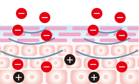 従来のタンパク質などを塗布するだけのトリートメントとは違い、電子トリートメントは髪に含まれるプラスとマイナスイオン電子の移動を利用して、髪のツヤやハリを含むミネラル水分を補給し、髪の中に吸着、閉じ込めることで素晴らしいツヤとハリを実現します。